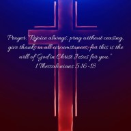 So, I will leave you with this scripture, “Rejoice always, pray constantly, give thanks in all circumstances; for this is the will of God in Christ Jesus for you.” (1 Thessalonians 5:16-18, The Great Adventure Bible – RSV – 2nd Catholic Edition)